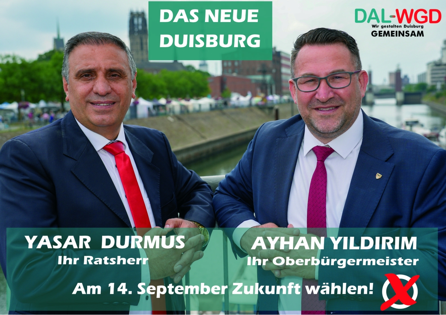 Seit dem 23. Mai 2025 sind wir jetzt die "Duisburger Alternative Liste DAL-WGD Wir gestalten Duisburg". Die Aktiven der WGD sind jetzt mit uns zusammen aktiv. Gemeinsam wollen wir Duisburg zu einer besseren Stadt für alle Menschen machen, die hier leben. Zur Kommunalwahl treten wir mit unserem Spitzenduo Ayhan Yildirim und Yasar Durmus an, sowie mit 37 Kandidaten in den Ratswahlkreisen sowie in den Bezirksvertretungen.